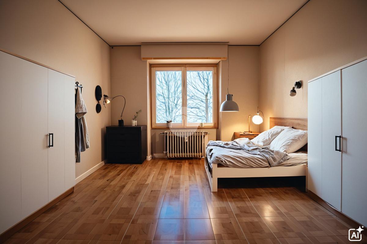 La camera da letto è matrimoniale e sono presenti due bagni, uno comodamente fruibile dotato di doccia.