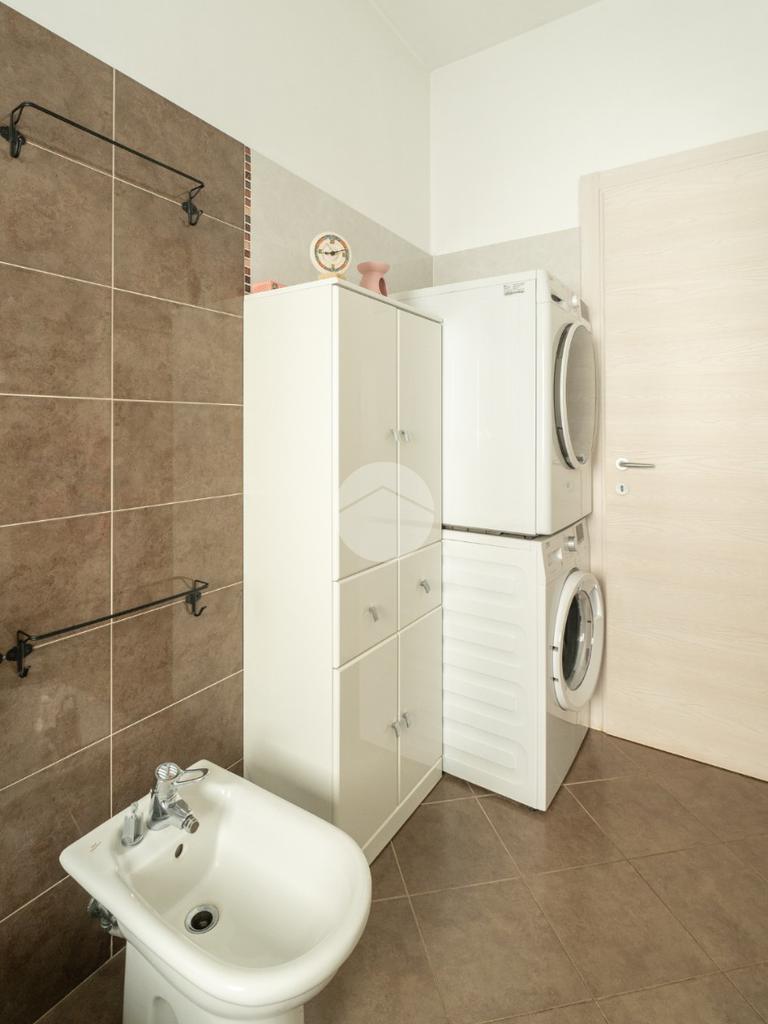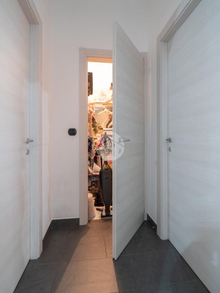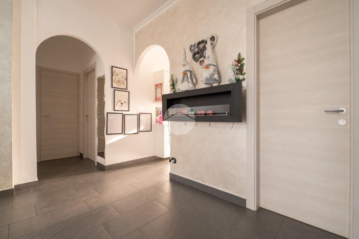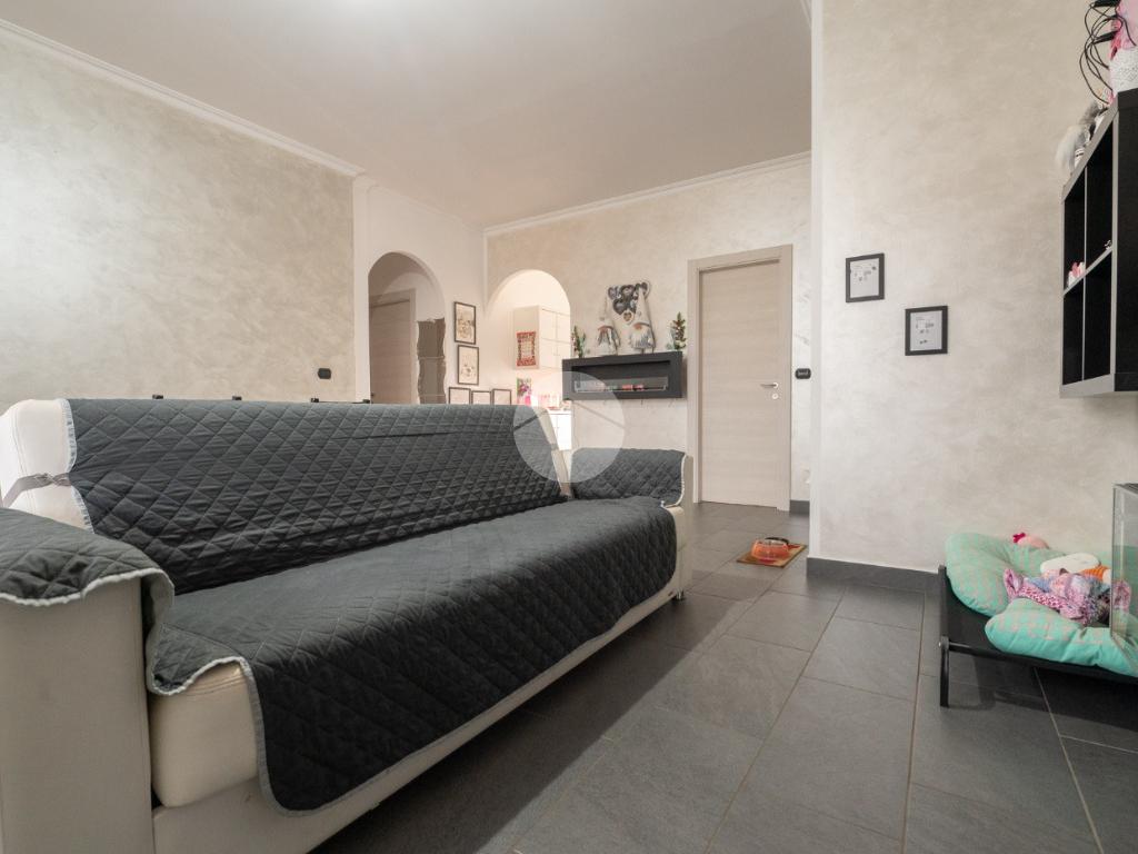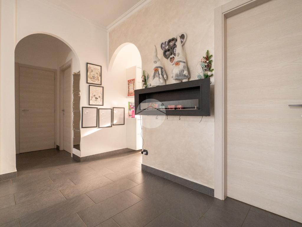 L'appartamento è stato recentemente oggetto di una ristrutturazione completa che ha previsto il rifacimento della pavimentazione, la sostituzione degli infissi interni ed esterni (finestre, porte interne e blindato) e la rivisitazione dell'impianto elettrico e idraulico. Dall’ingresso si accede all’ampio soggiorno living con sfogo, tramite porta finestra, su un terrazzino verandato esposto a sud. La cucina semi-abitabile è adiacente al soggiorno, e ha accesso su un secondo balcone.