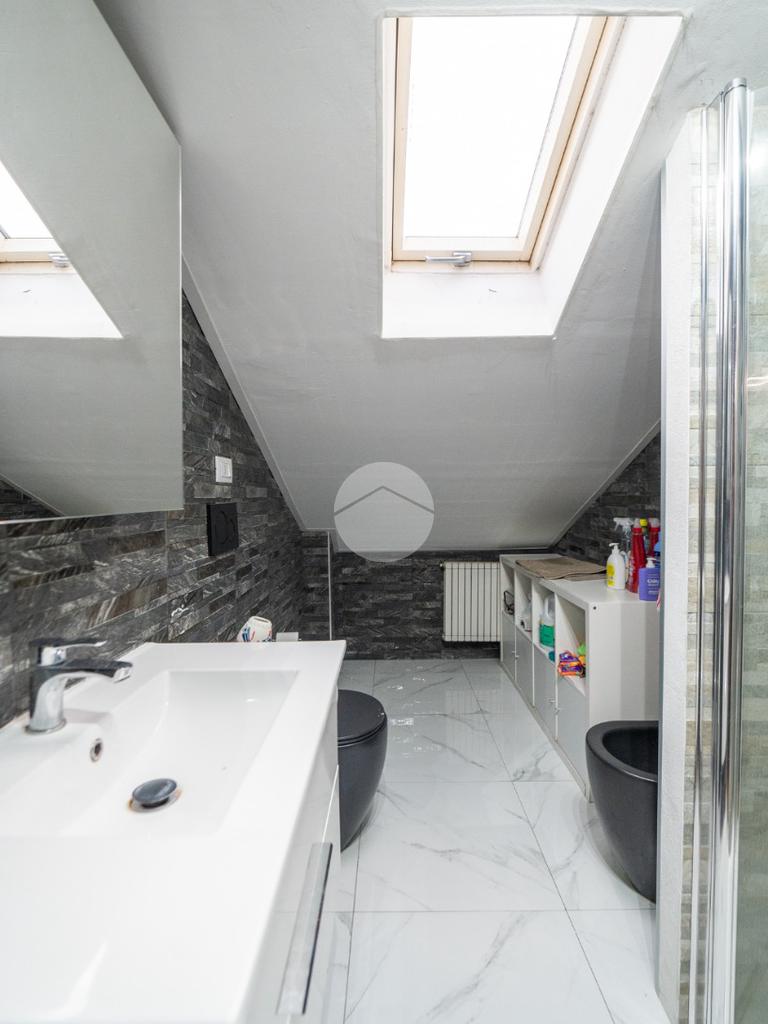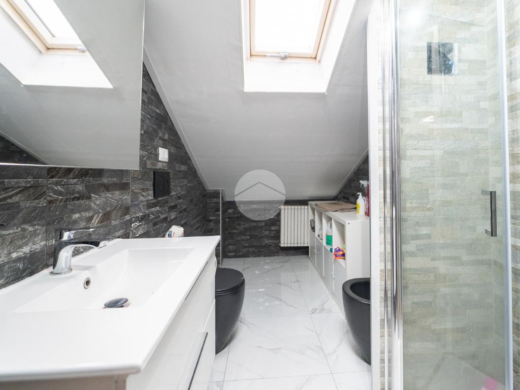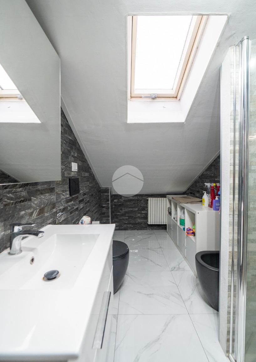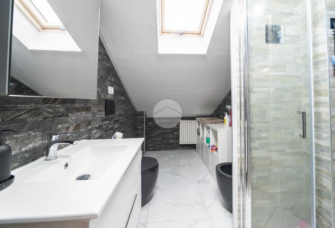 Il bagno è finestrato grazie alla presenza del velux e dotato di box doccia.