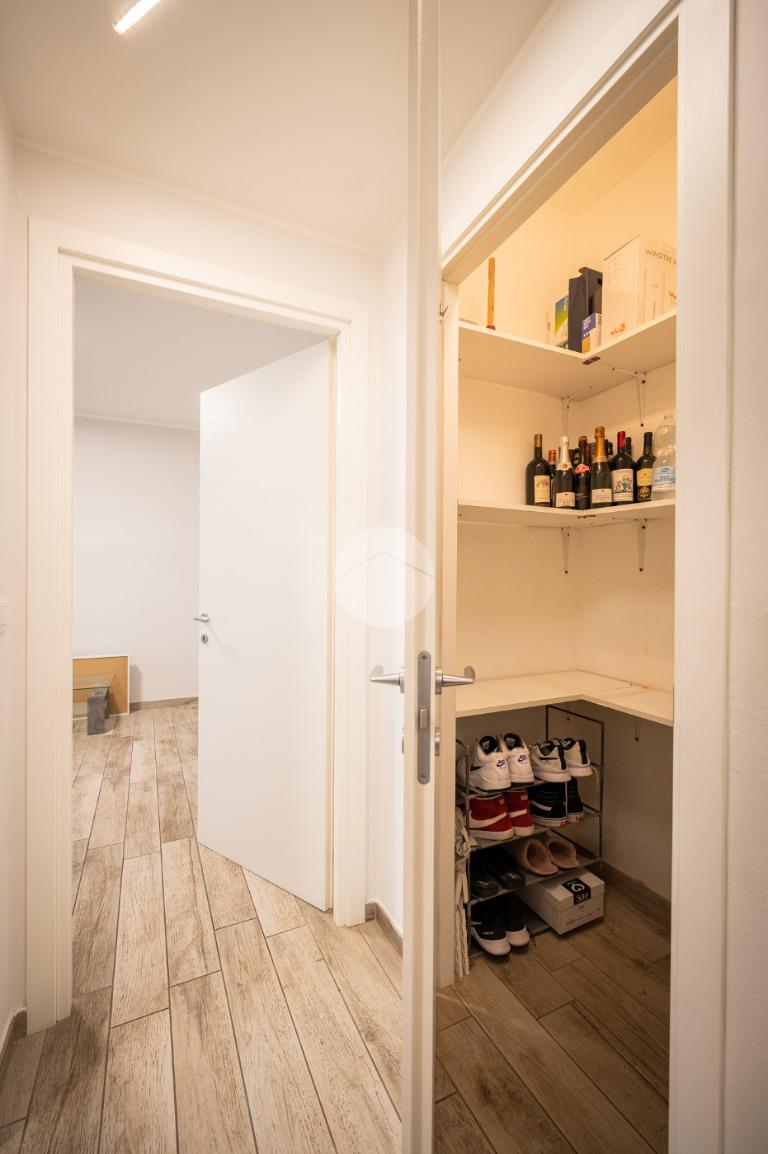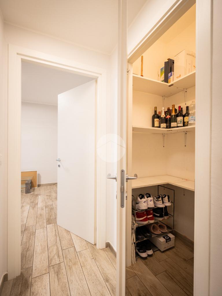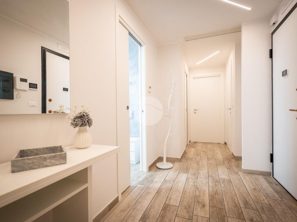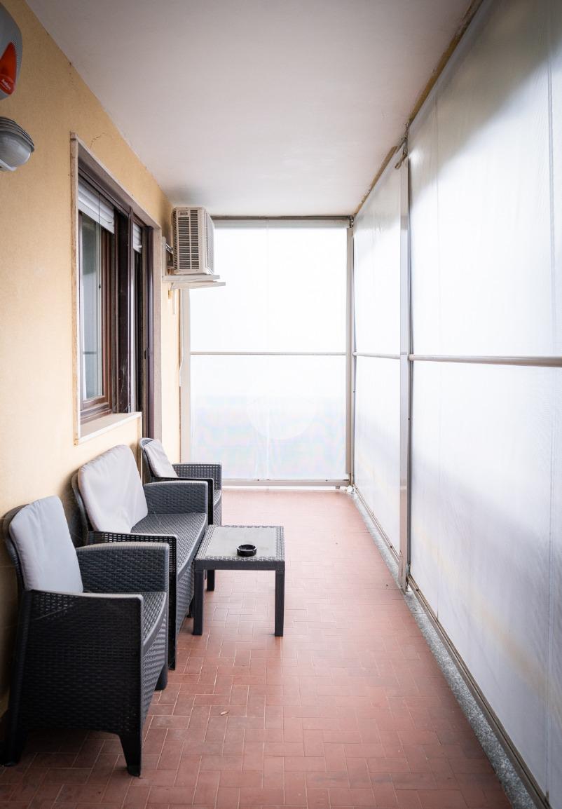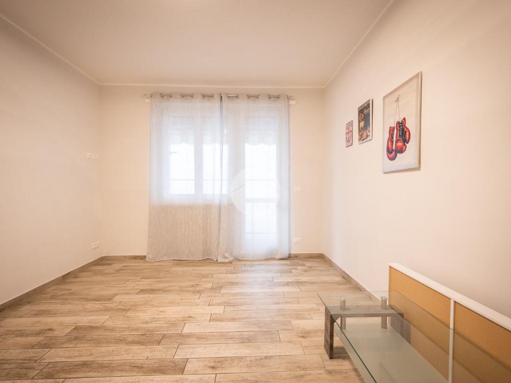 La soluzione internamente è stata totalmente ristrutturata. L'ampia e luminosa zona giorno è composta da un ambiente living con cucina a vista comodamente fruibile ed è dotata di due porte finestre con sfogo sul terrazzino munito sia di tenda invernale sia di tenda da sole.