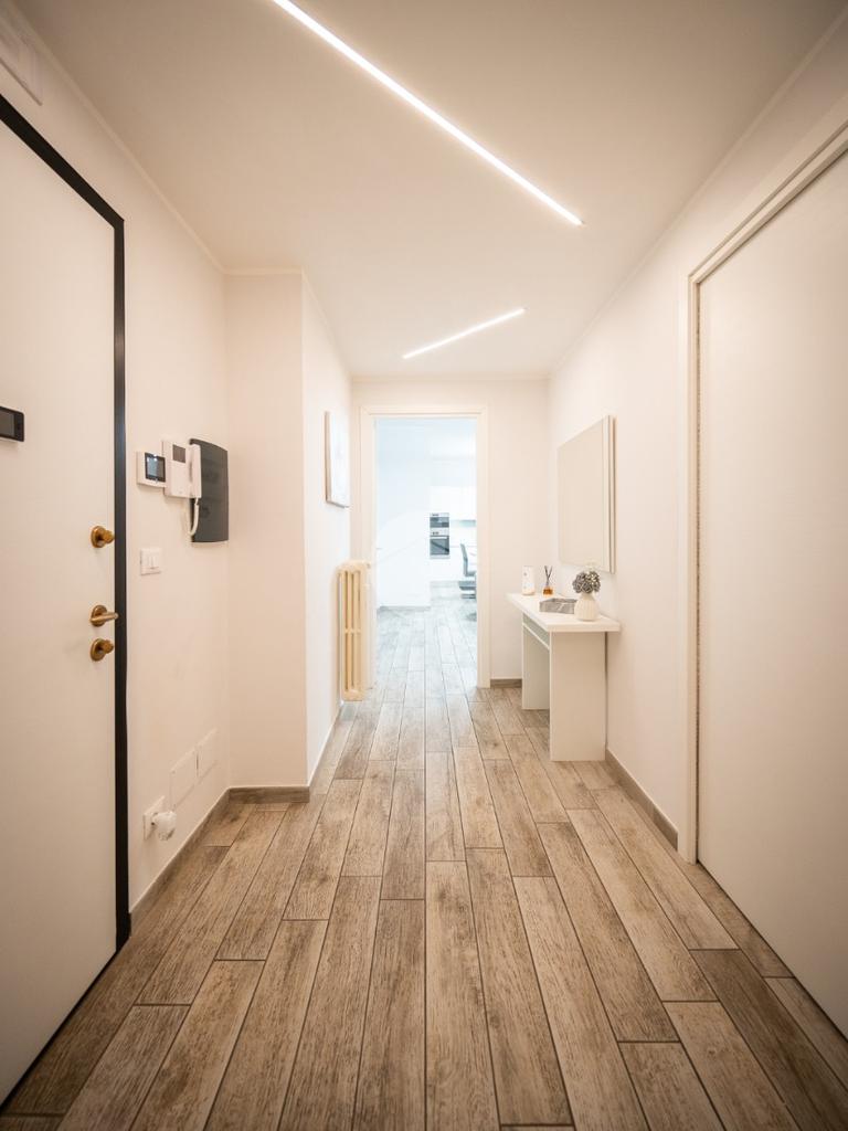 Gli infissi sono in PVC con doppio vetro, il riscaldamento è centralizzato con termovalvole ed è presente l'impianto di condizionamento canalizzato. L'antifurto è perimetrale.