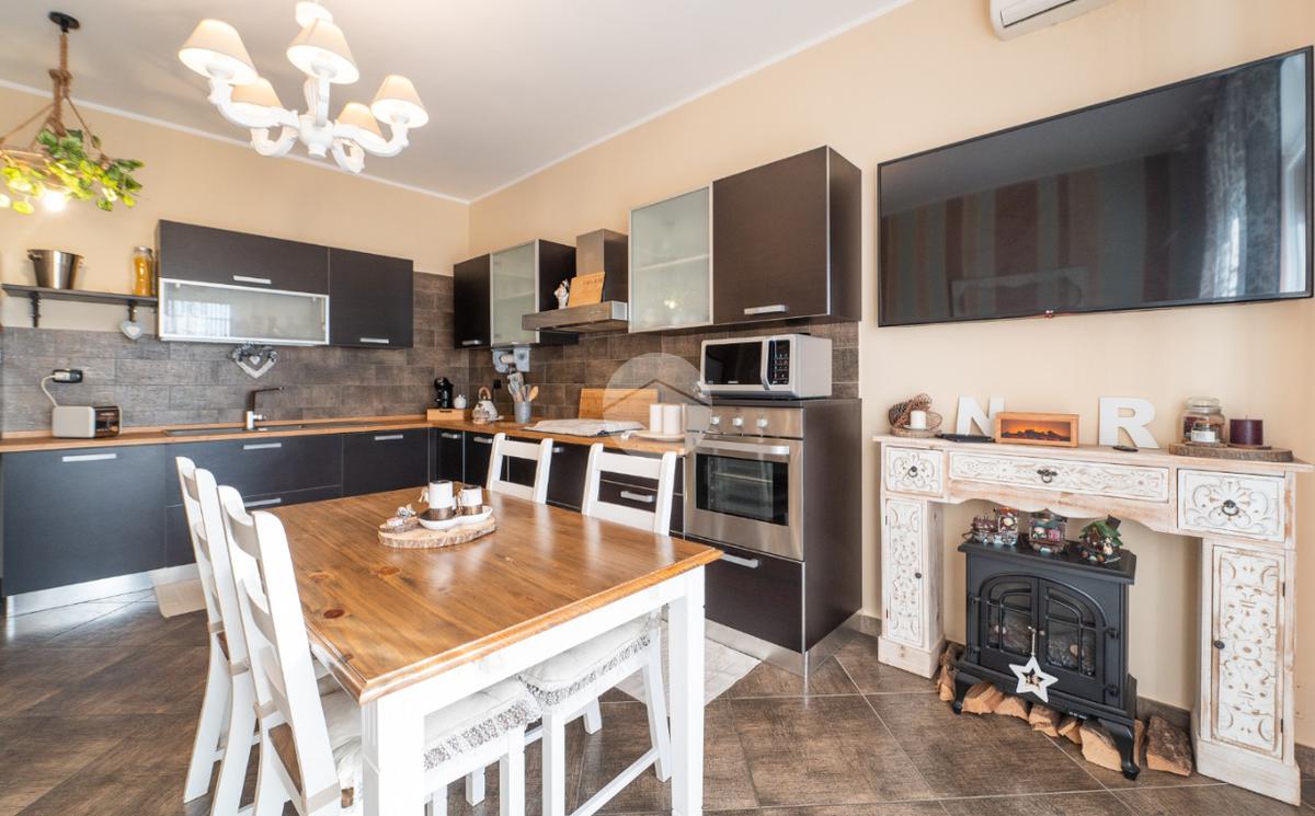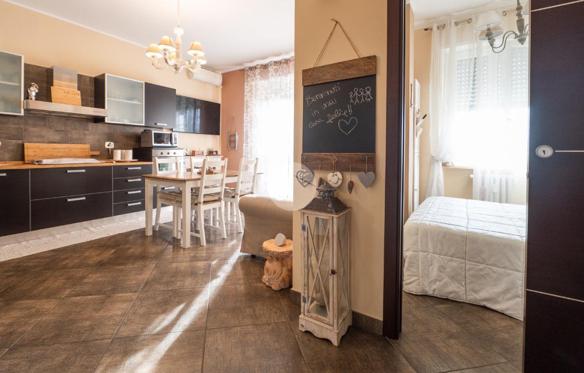 L'appartamento internamente è stato totalmente ristrutturato nel 2008 anche a livello impiantistico. Dalla porta blindata si accede alla zona giorno living con cucina a vista, dalla quale si accede al balcone dotato sia di tenda da sole e inferriate.
