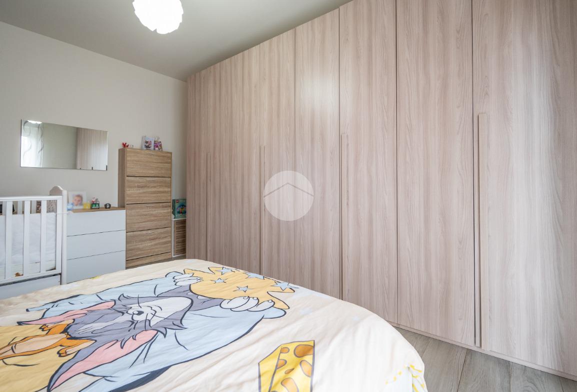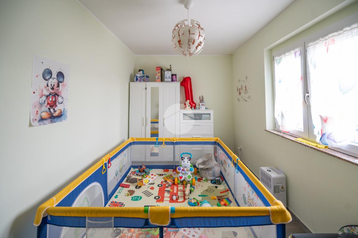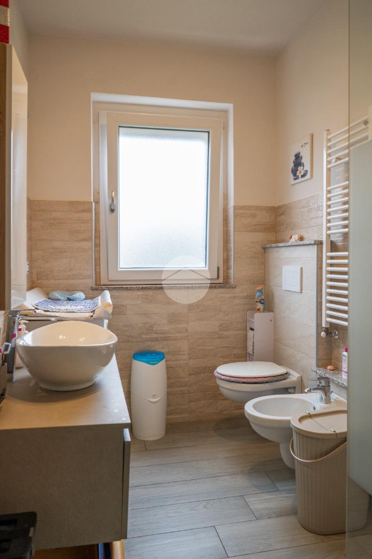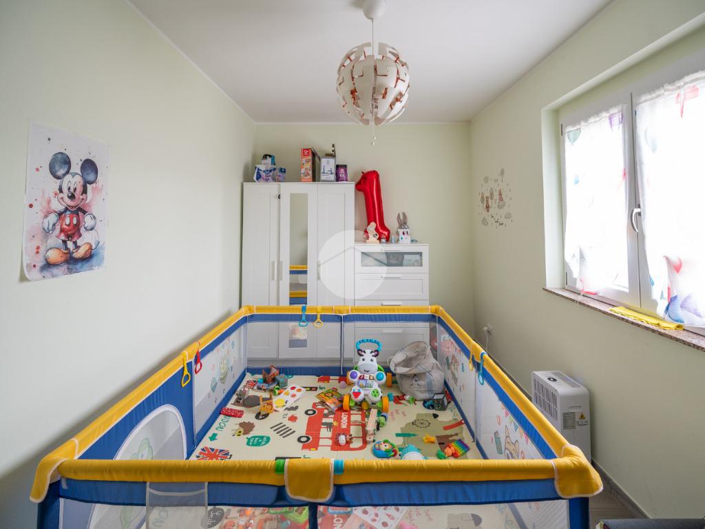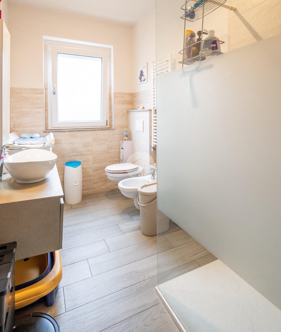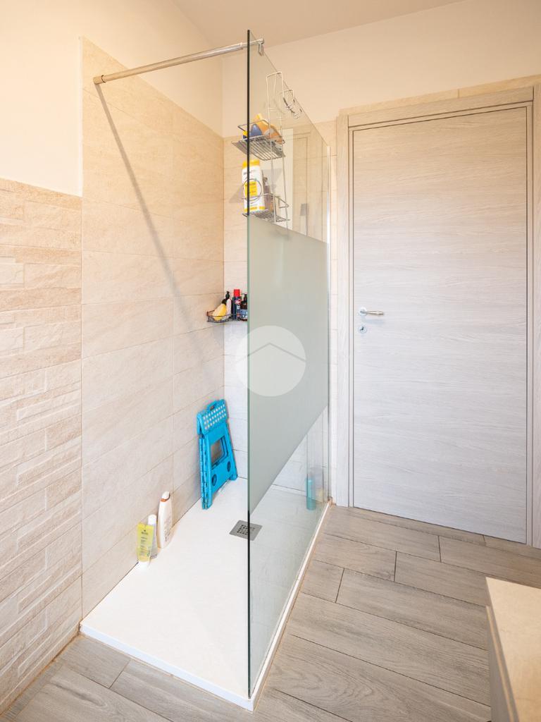 Al piano sono altresì presenti due camere da letto, di cui una matrimoniale con accesso a un balcone, oltre a un bagno finestrato dotato di spazioso box doccia.