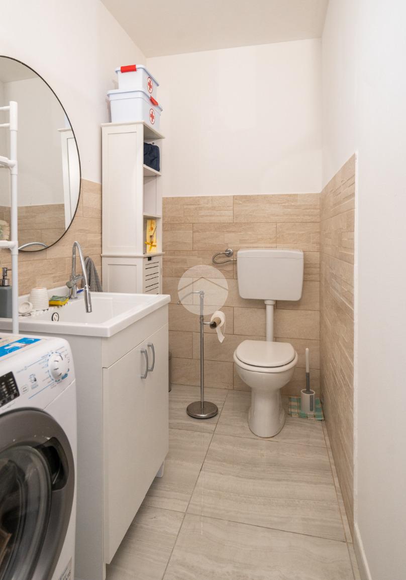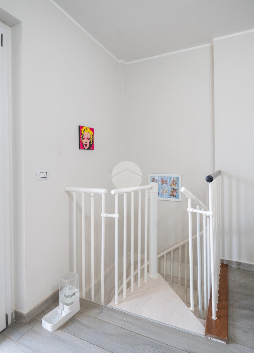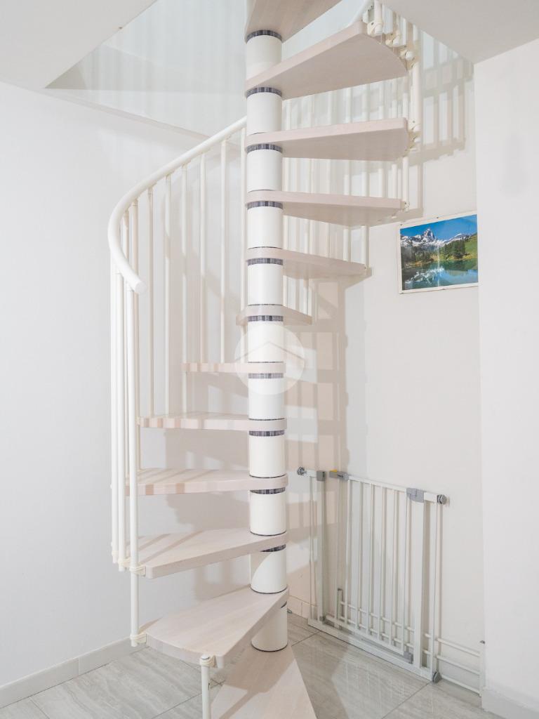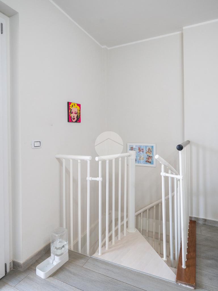 Una comoda scala interna a chiocciola conduce al piano inferiore, ragiungibile anche dal vano scale esterno, dove si sviluppa una spaziosa tavernetta attualmente organizzata come open space. È inoltre presente un secondo servizio, dotato di attacchi per la lavatrice.