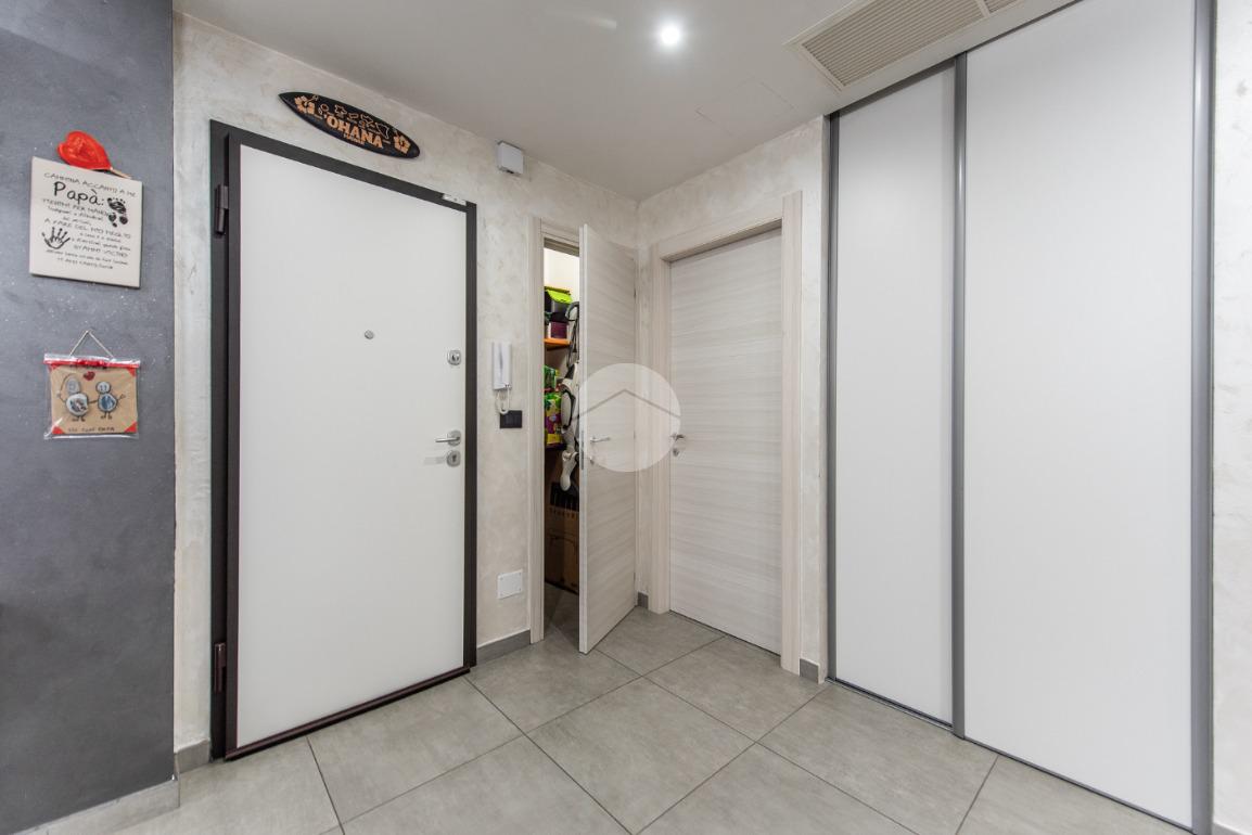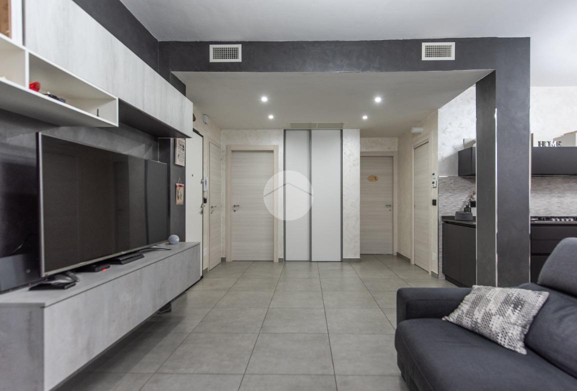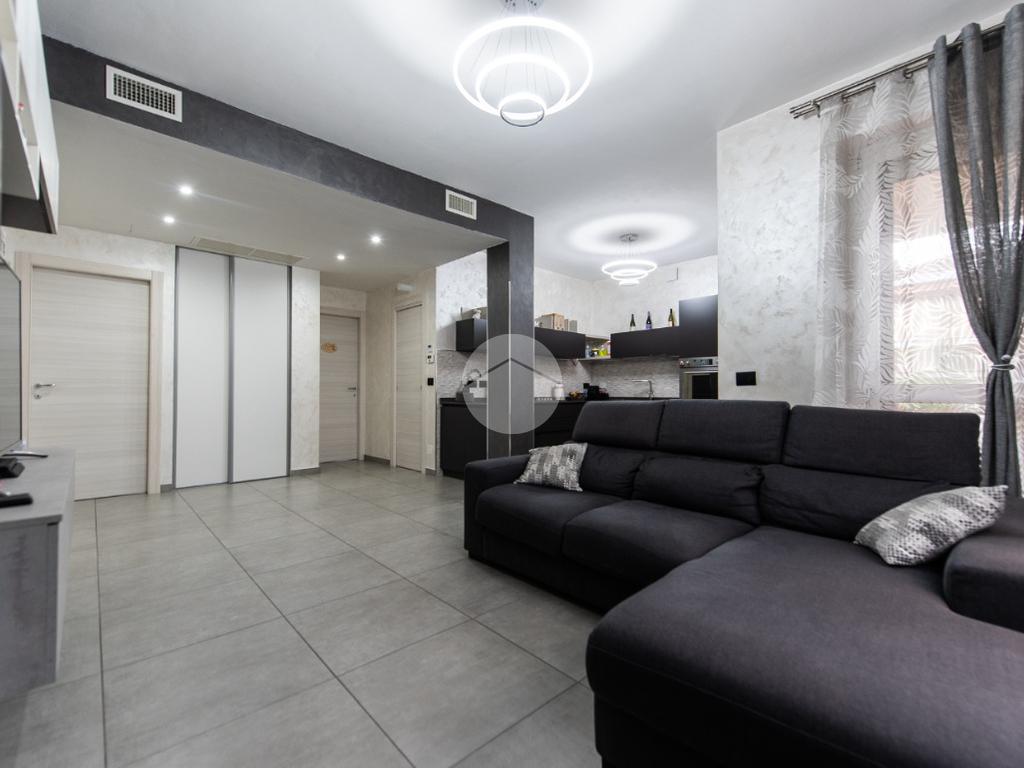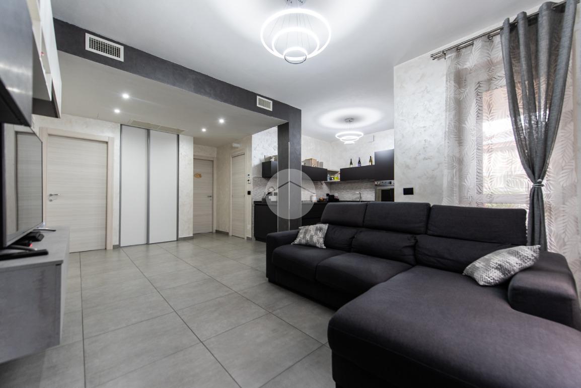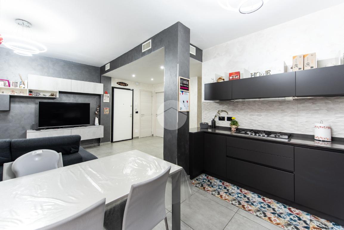 Dalla porta blindata si accede all’ampia e luminosa zona giorno living con cucina a vista, dalla quale si accede al terrazzo coperto.