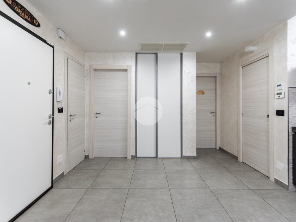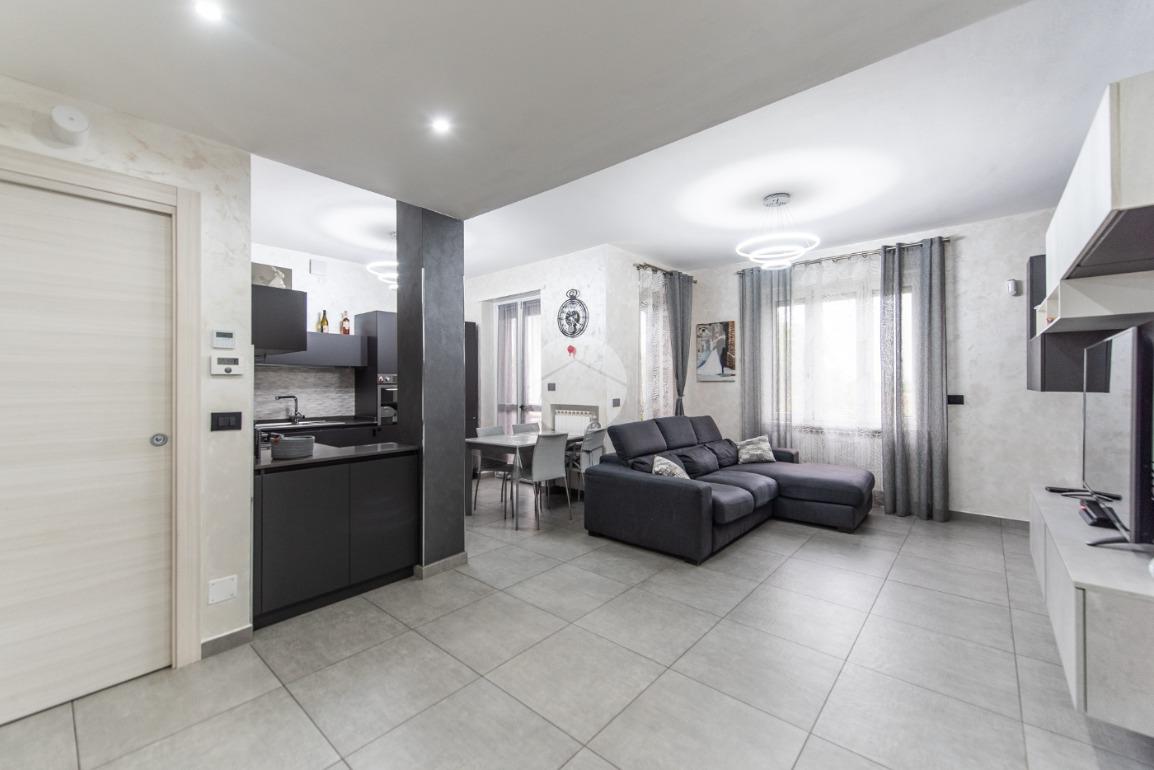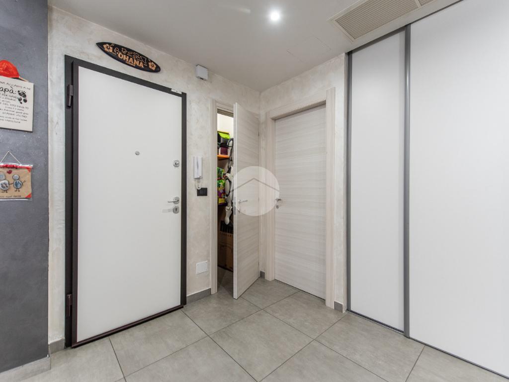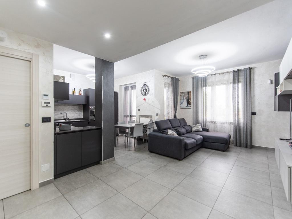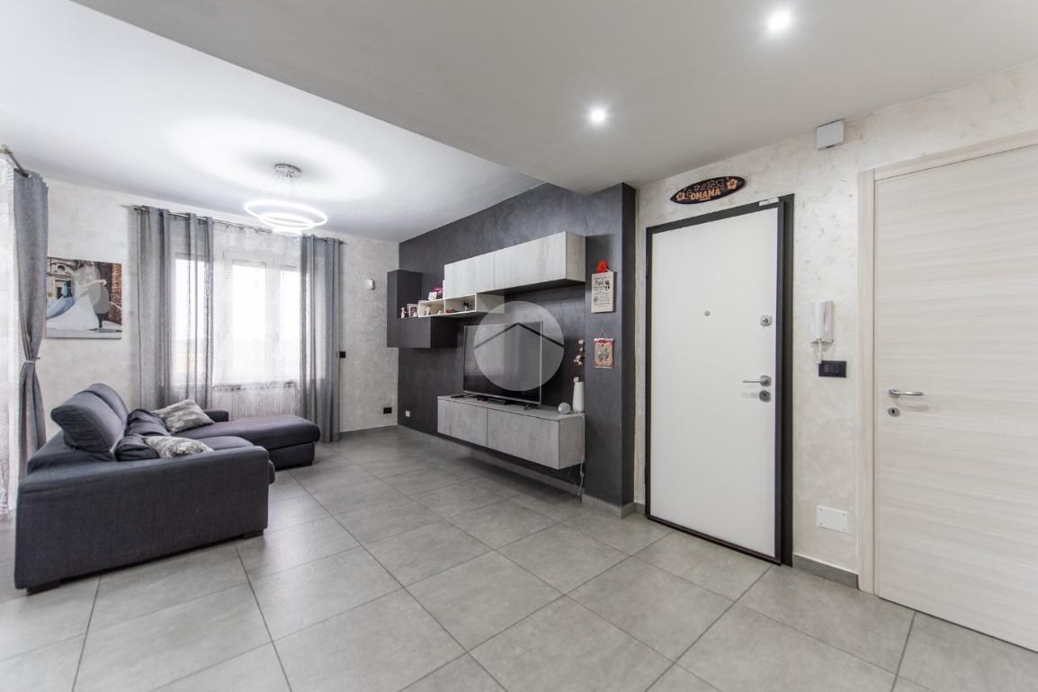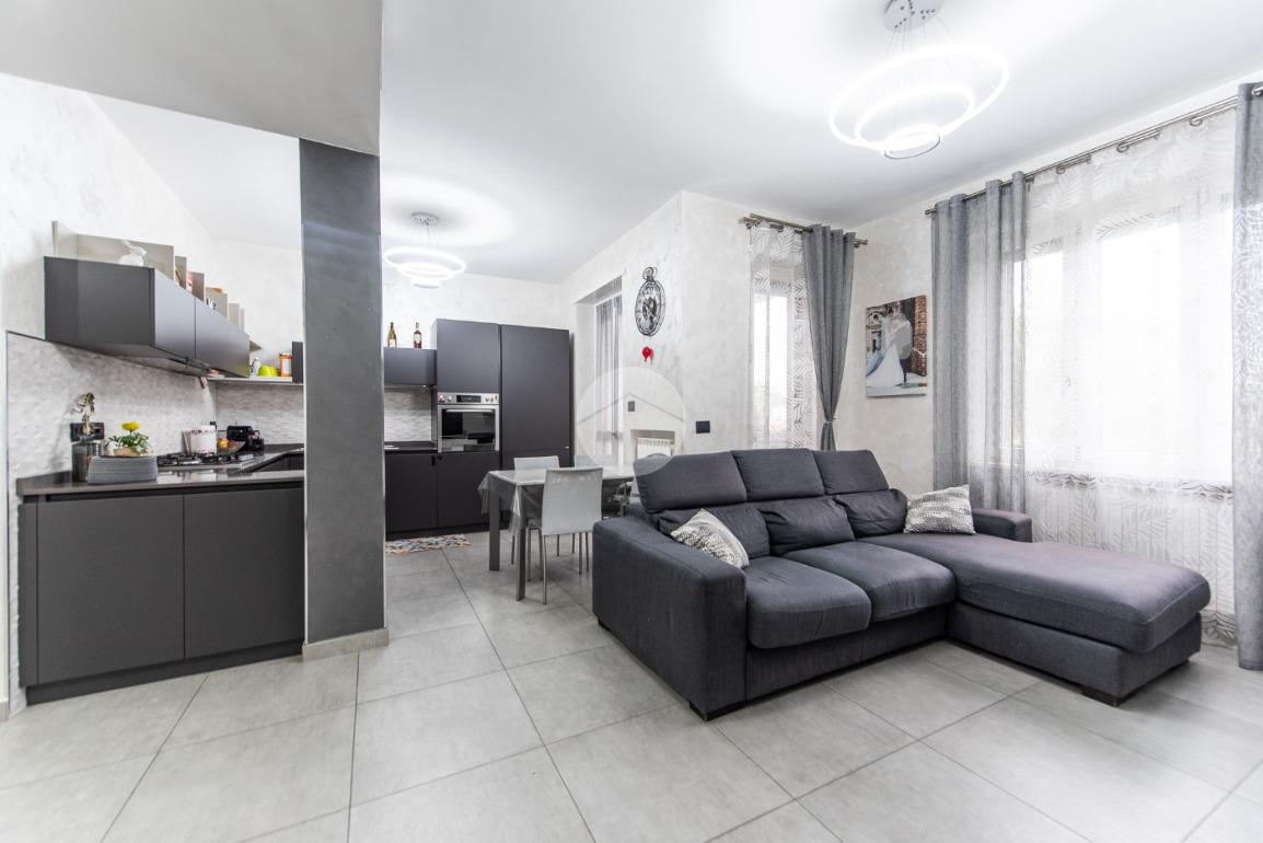 Dalla porta blindata si accede all’ampia e luminosa zona giorno living con cucina a vista, dalla quale si accede al terrazzo coperto.