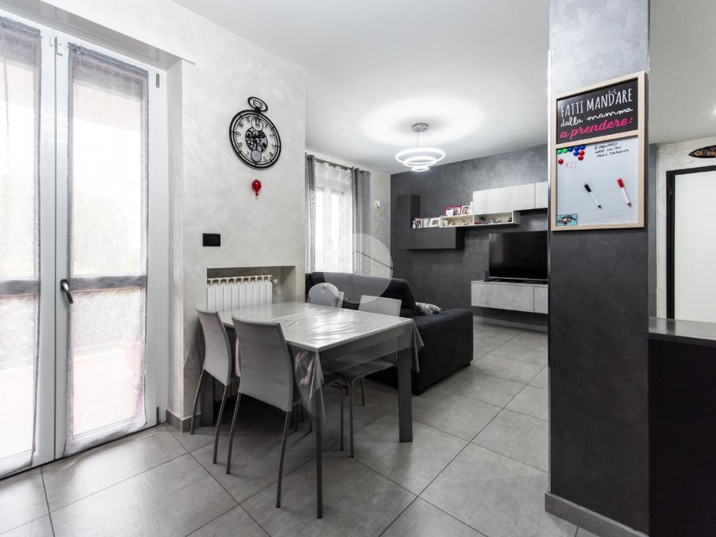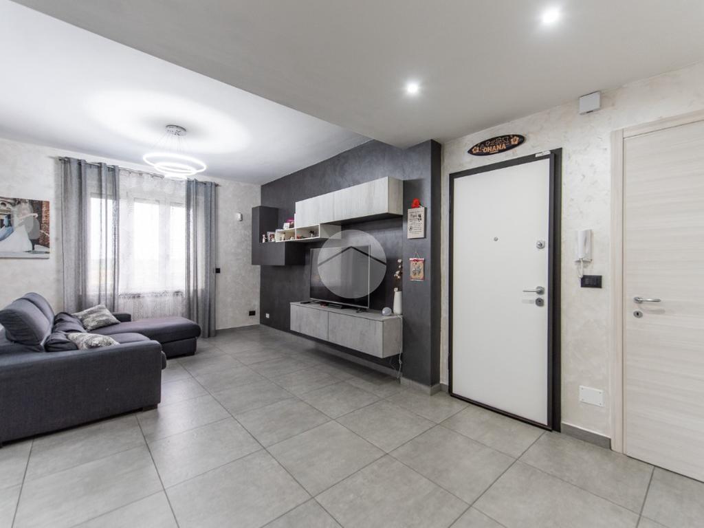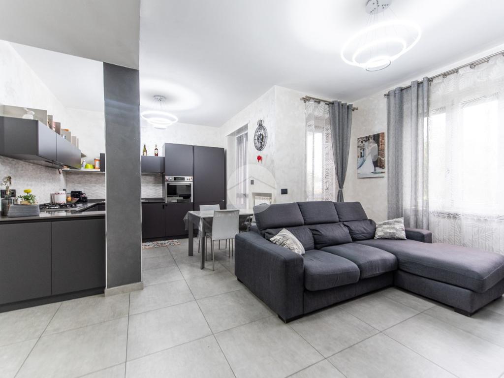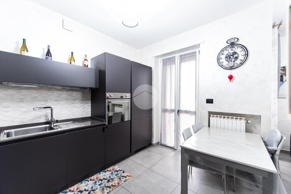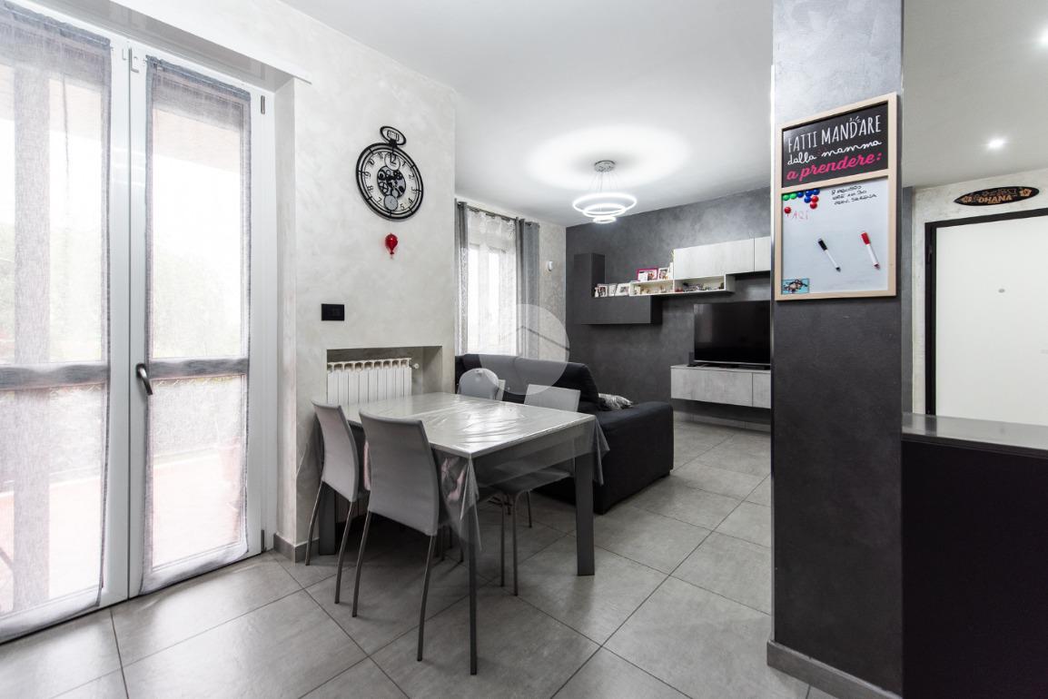 Dalla porta blindata si accede all’ampia e luminosa zona giorno living con cucina a vista, dalla quale si accede al terrazzo coperto.