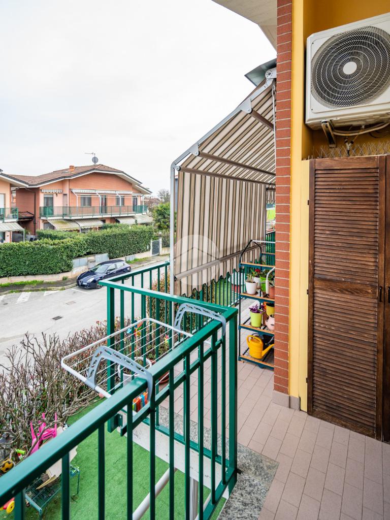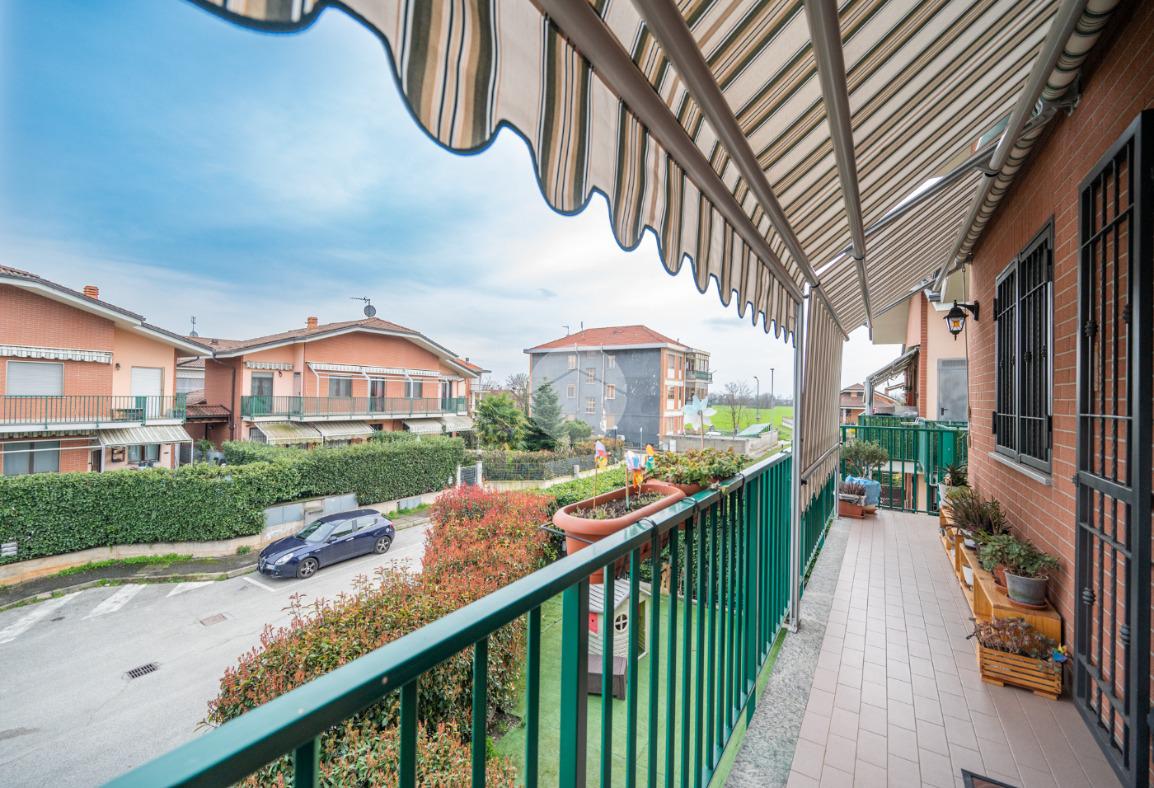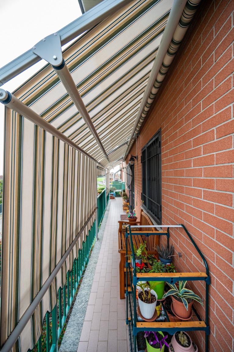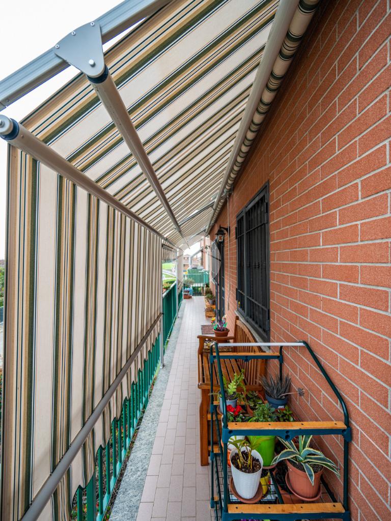 Dall'ingresso si accede all'ampia e luminosa zona giorno living con cucina a vista, dalla quale si accede tramite porte finestre al terrazzino sviluppato in lunghezza e dotato di tende da sole.