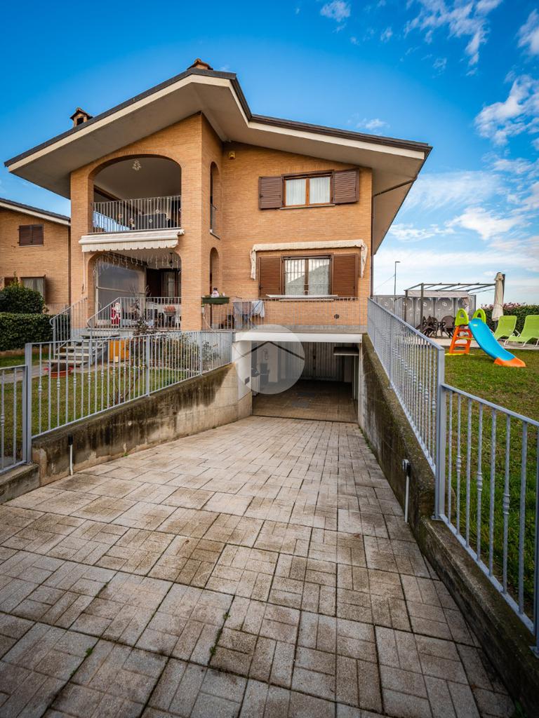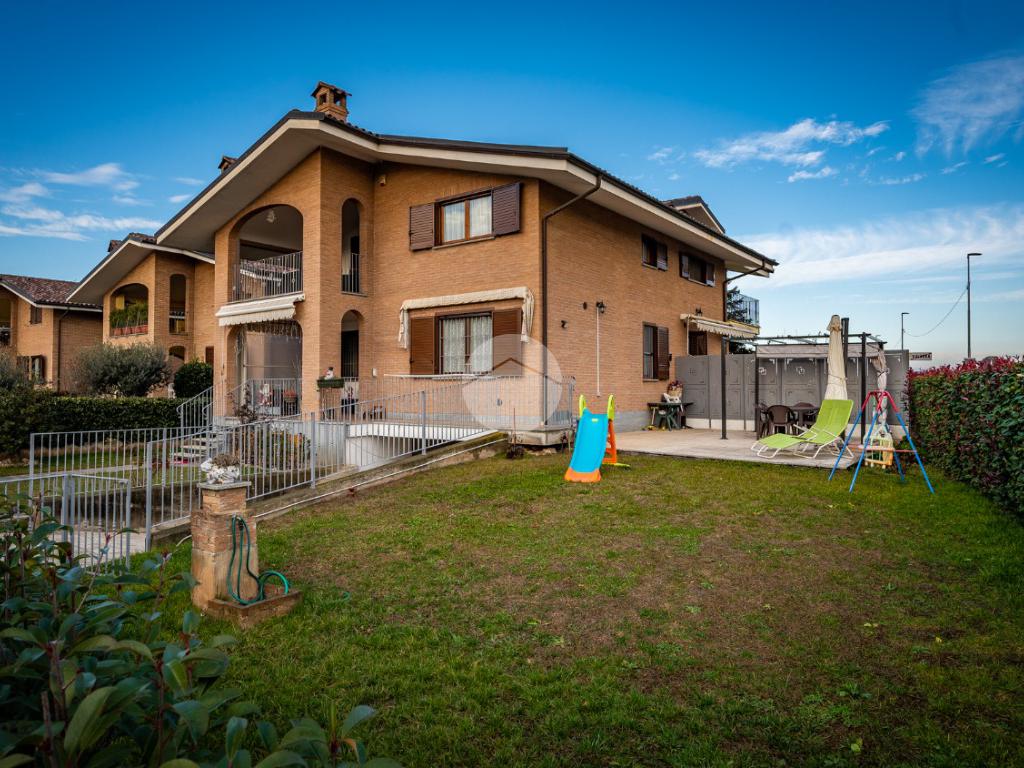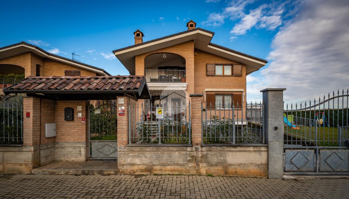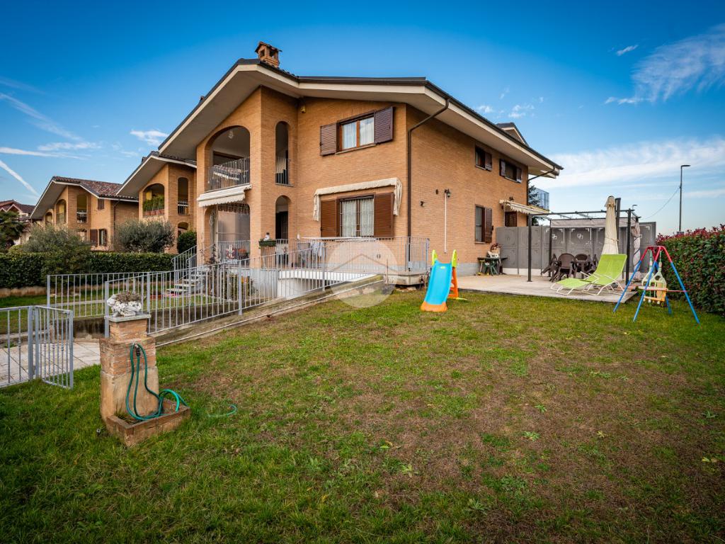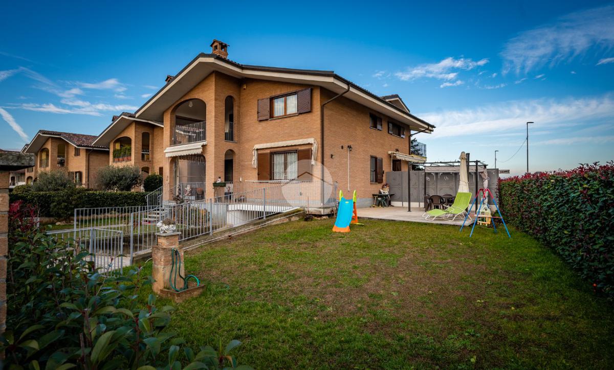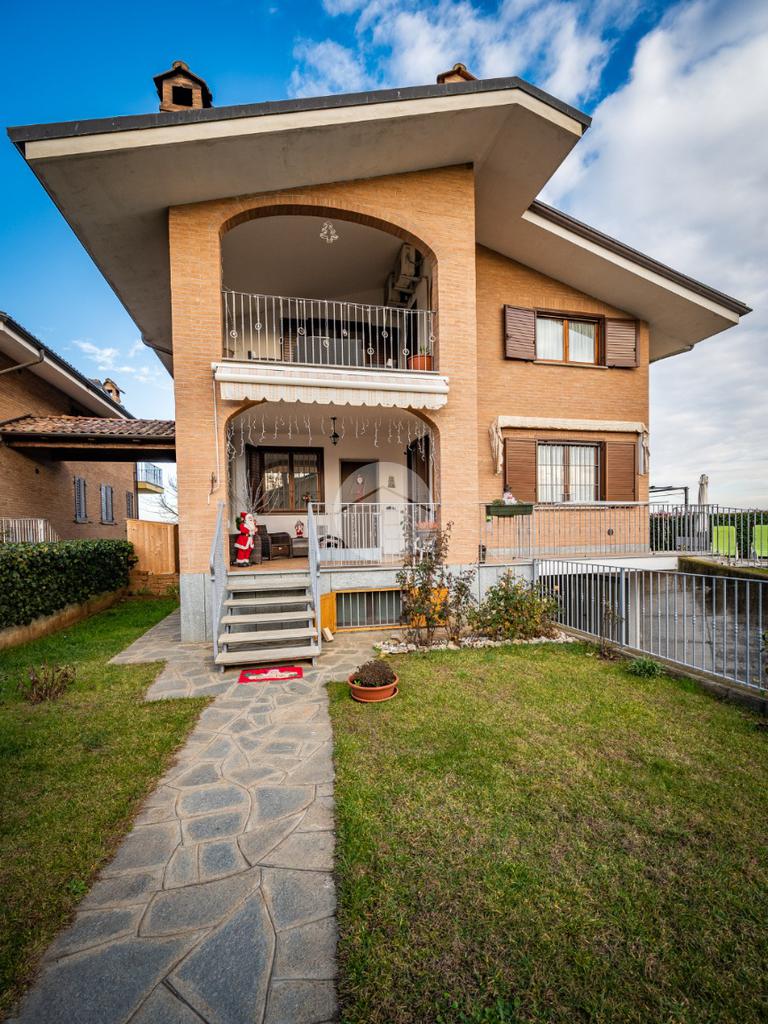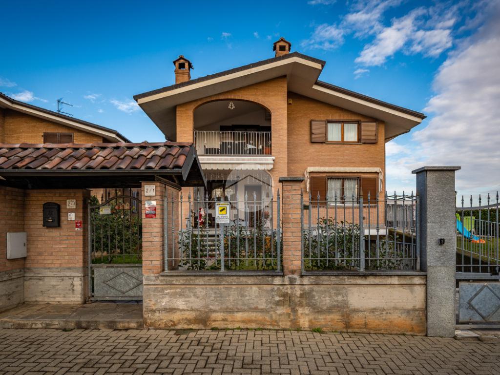In zona signorile, a pochi passi dal centro di Volvera, la villa in paramano del 2005 è libera su tre lati.