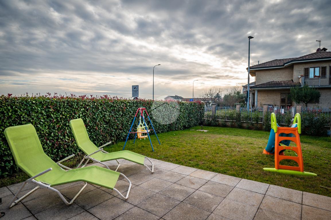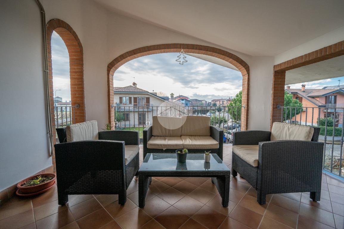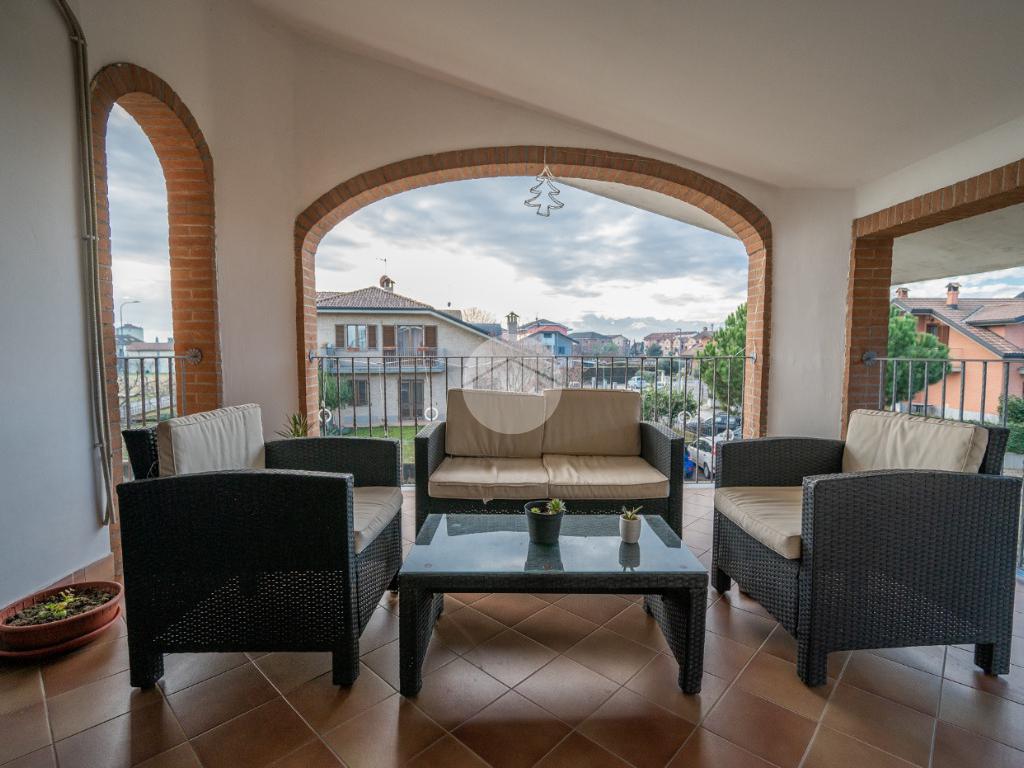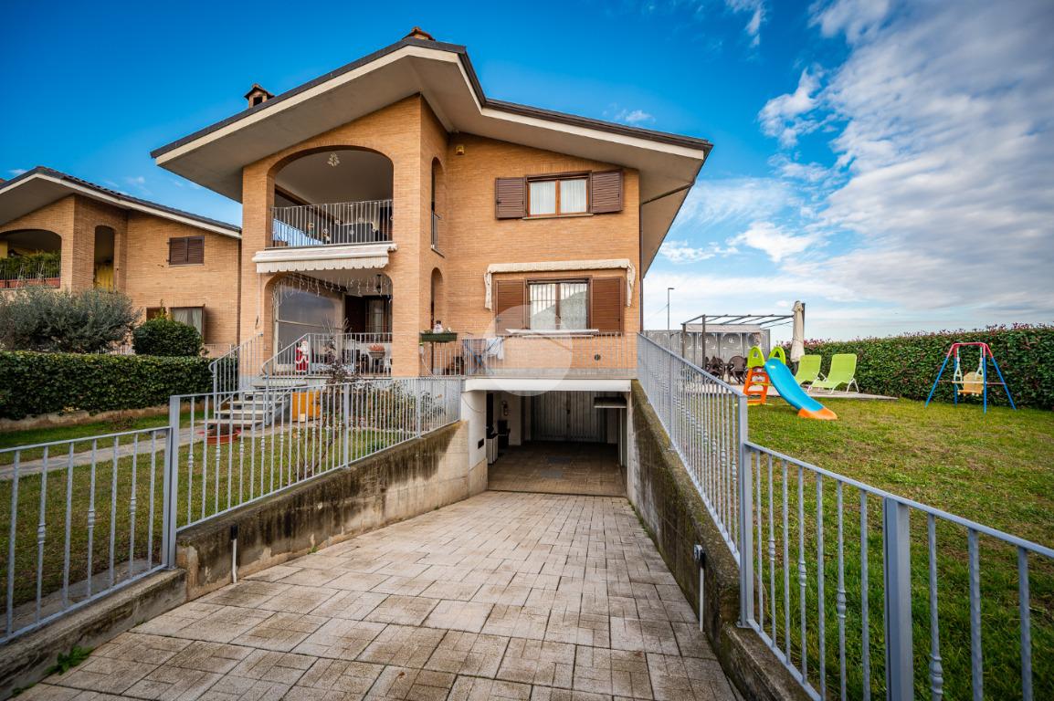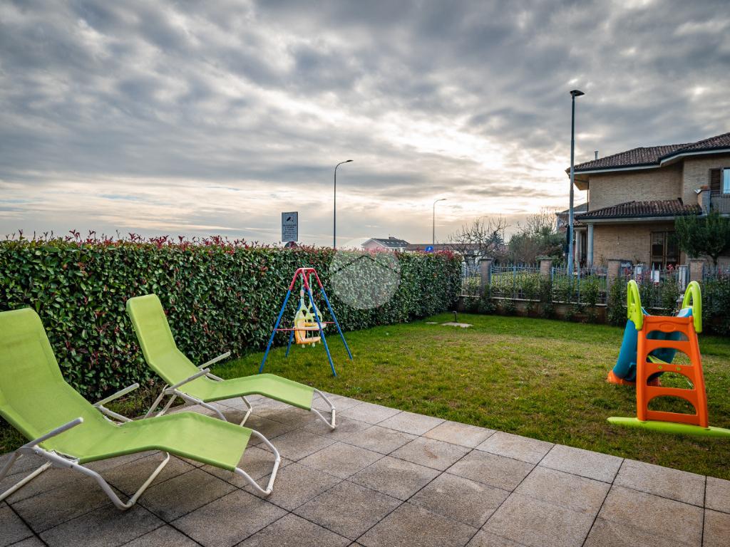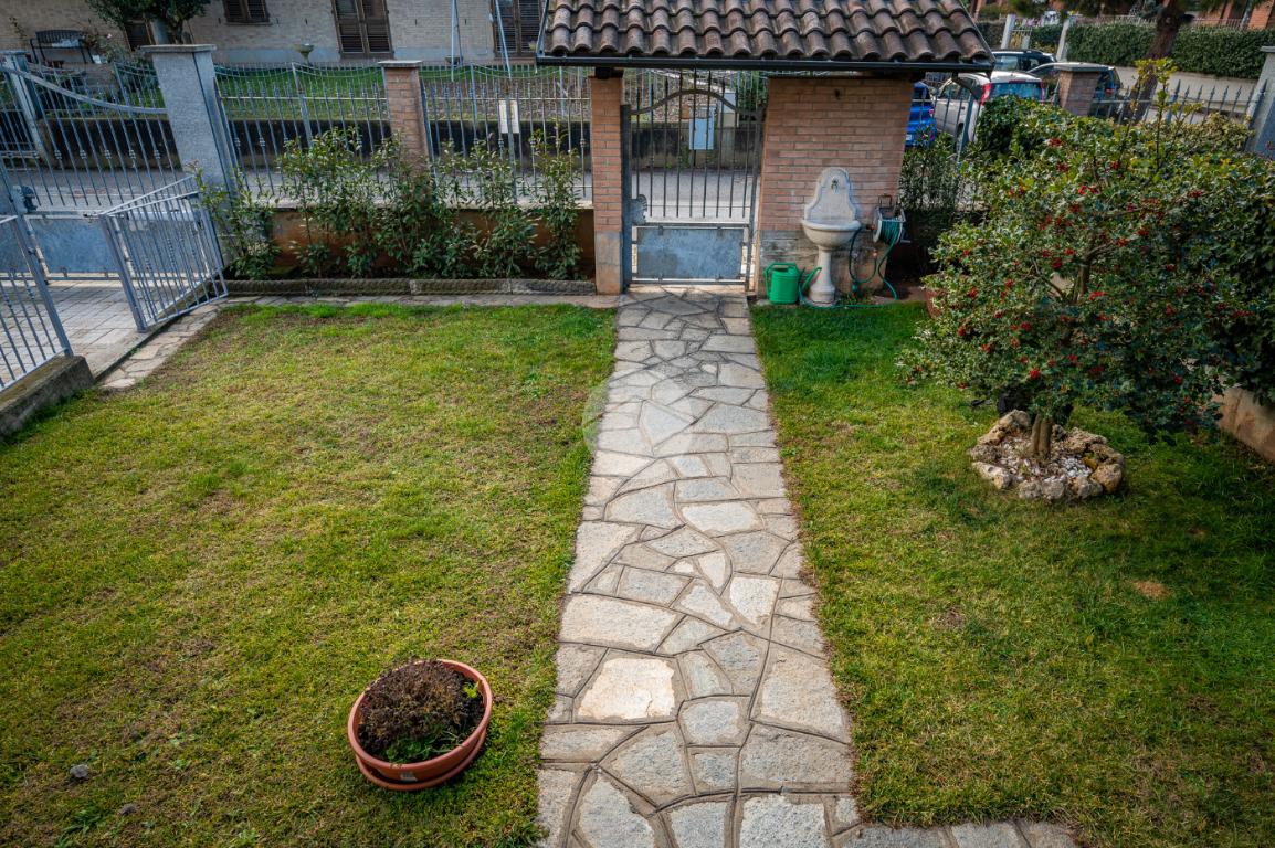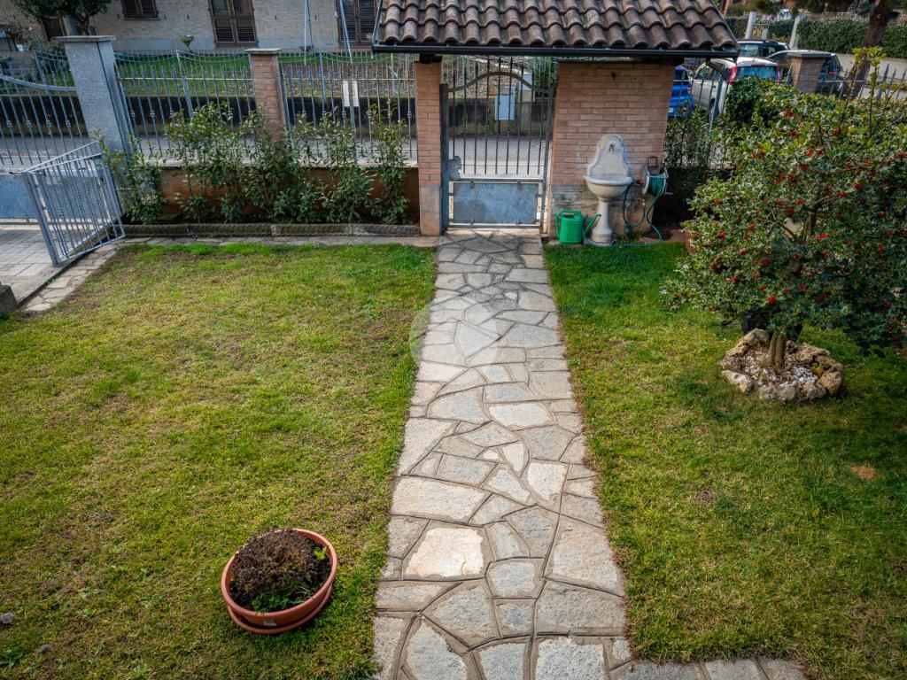In zona signorile, a pochi passi dal centro di Volvera, la villa in paramano del 2005 è libera su tre lati.