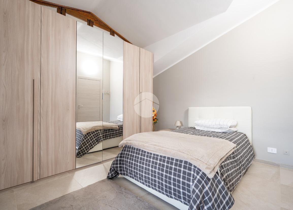 La zona notte, raggiungibile tramite una comoda scala, è composta da due ampie camere da letto entrambe dotate di accesso diretto al terrazzo coperto, e dal bagno con vasca.