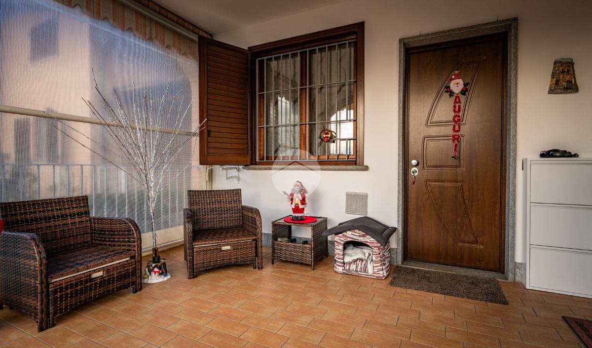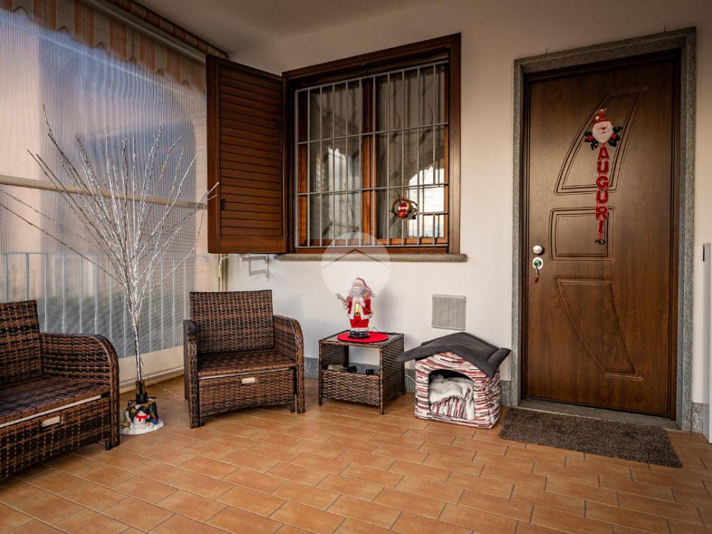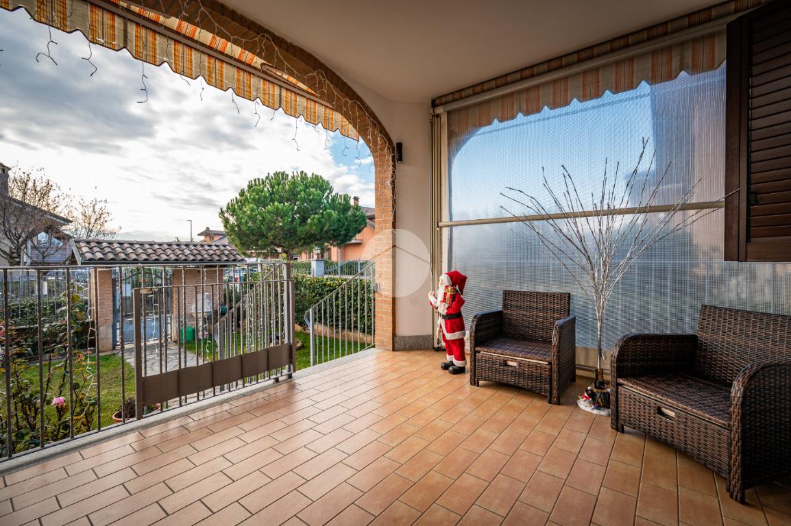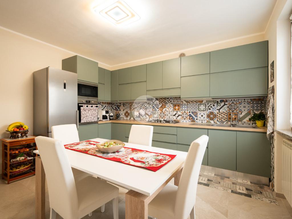Dal doppio portone blindato si accede alla zona giorno, composta dal salone e dalla cucina abitabile dalla qualche si accede, tramite porta finestra, al patio coperto comodamente fruibile e munito anche di tenda da sole e tenda veranda.